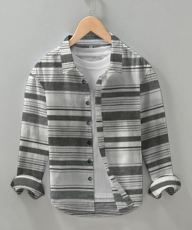 Design details: Full seleves cotton black gray stripes